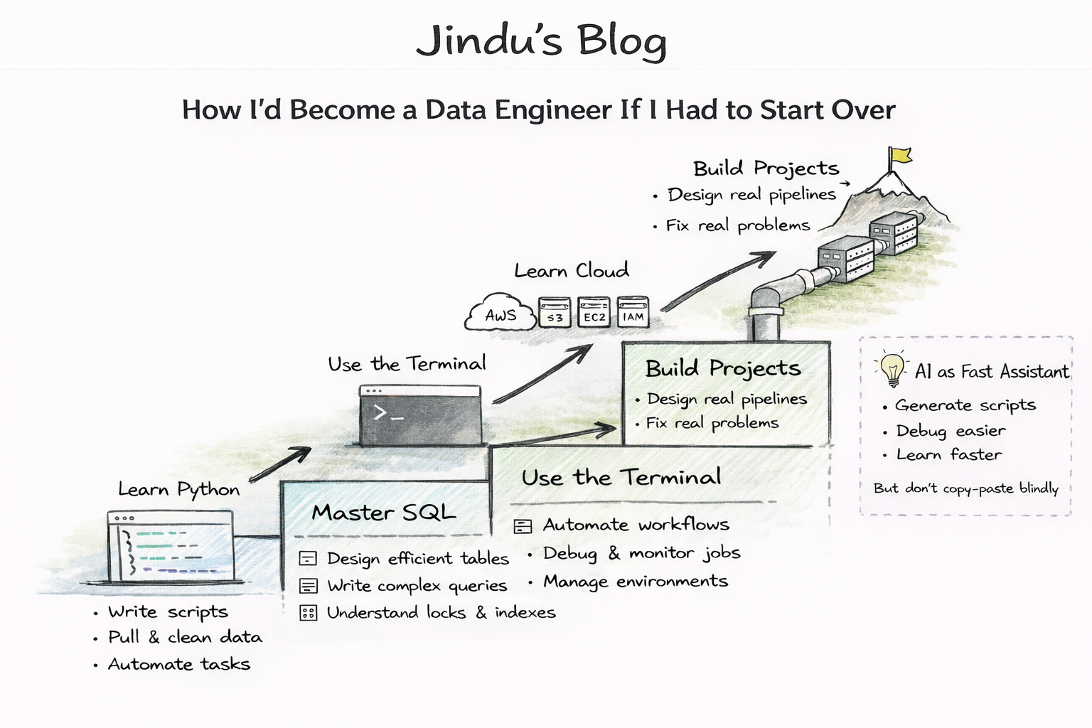 Jindu, I heard you’re a data engineer. I’m thinking of moving into the field, how would you advise on what to learn to land a job?