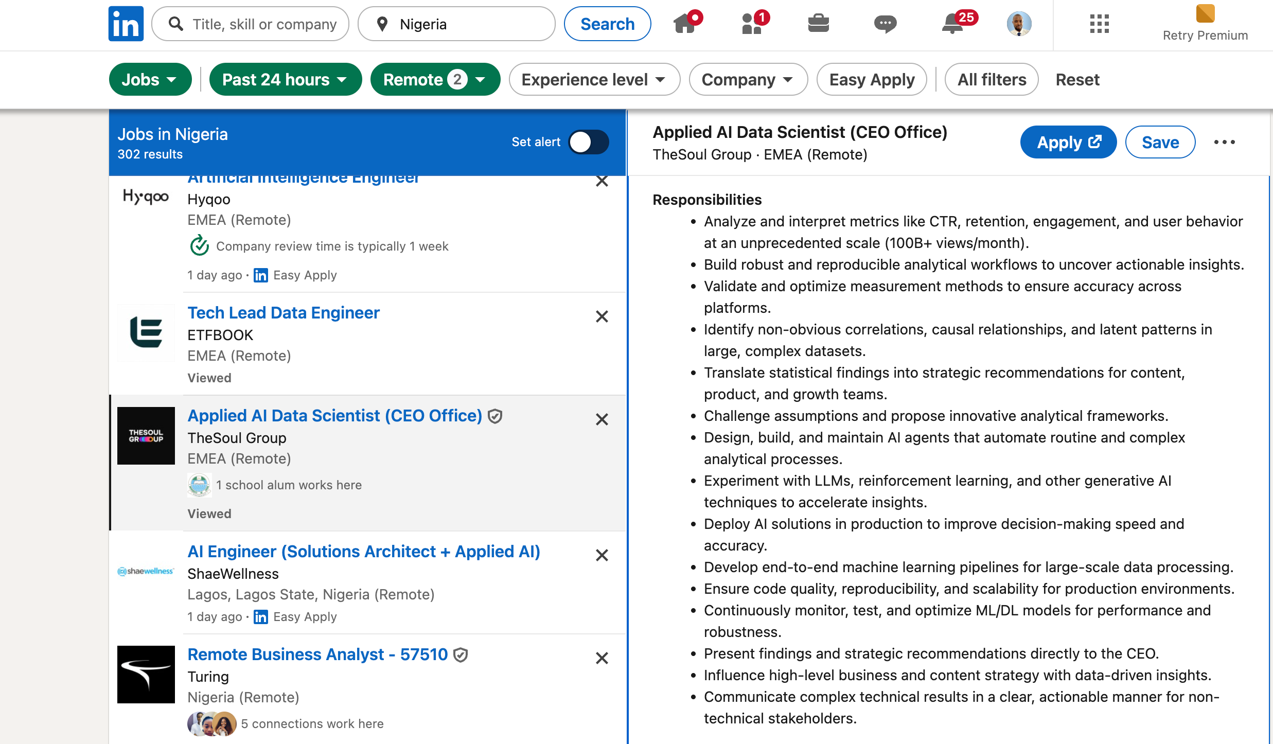 - Data scientist roles focused on Python, statistics, and machine learning.